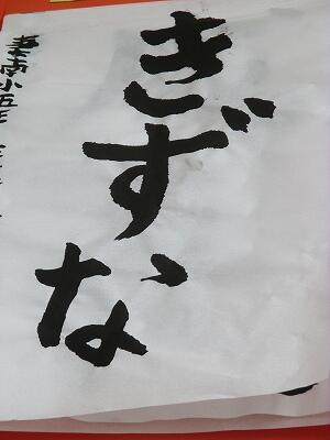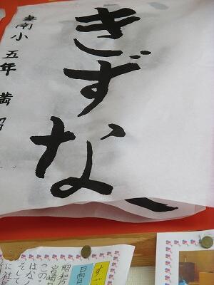 ひらがな「きずな」に挑戦・・・。やわらかい筆使いに苦戦を強いられていましたが、懸命に取り組み、それぞれの「きずな」が完成しましたよ。