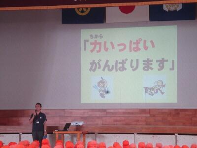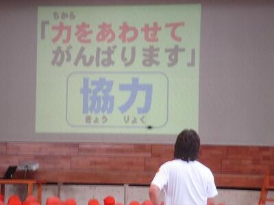 運動会に向けて、校長先生より2つの大切なお話がありました。1つは「力いっぱいがんばる」こと・・・子ども達は言葉に込められた思いを真剣にうけとめていました。