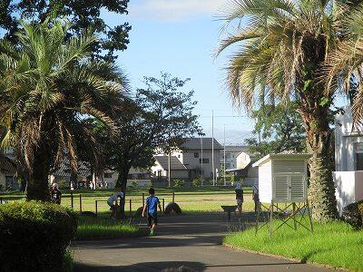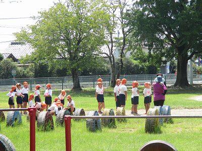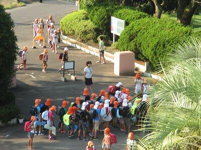 残暑厳しい日々・・・朝はもやに覆われて空がかすんでいます。今日も暑い一日になりそうです。子ども達は、熱中症対策の一環で外にでる時は特にコップいっぱいの水を飲むようにアドヴァイスを受けています。