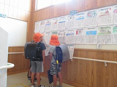 夏休みの思い出が絵日記風に描かれ、掲げられていますよ。