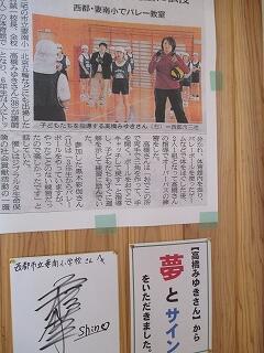 先日、本校でバレーの指導をしていただいた2度のオリンピックを経験された髙橋さんの記事やサインが掲げてありますよ!6年生はがんばれば叶う・・・と夢をもらいましたね。