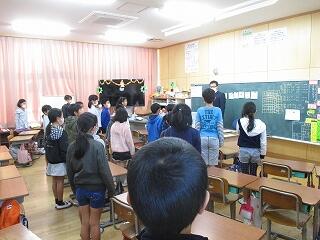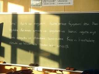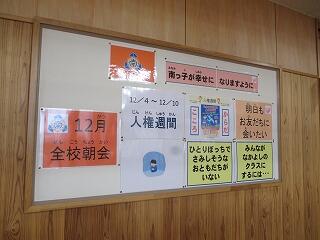 終業式 投稿日時 : 2017/12/22 kannrisya インフルエンザの警報が県内をかけめぐっています。いつもより3週間早い流行とか・・・本校でも対策の一環として終業式は放送で行いました。子ども達は教室で校長先生のお話に耳を傾けていましたよ。「大掃除」というキーワードのお話・・・その内容の詳細は本ホームーページ「校長室から」をご一読下さい。
