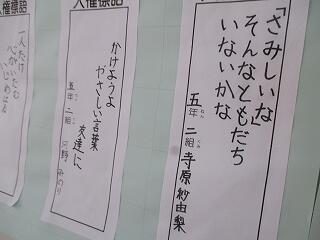 2017年12月の記事一覧 2017年12月 全ての記事 カテゴリ 今日の出来事 アーカイブ 2025年12月 (0) 2025年11月 (0) 2025年10月 (0) 2025年9月 (0) 2025年8月 (0) 2025年7月 (0) 2025年6月 (0) 2025年5月 (0) 2025年4月 (0) 2025年3月 (0) 2025年2月 (0) 2025年1月 (0) 2024年12月 (0) 2024年11月 (0) 2024年10月 (0) 2024年9月 (0) 2024年8月 (0) 2024年7月 (0) 2024年6月 (0) 2024年5月 (0) 2024年4月 (0) 2024年3月 (0) 2024年2月 (0) 2024年1月 (0) 2023年12月 (0) 2023年11月 (0) 2023年10月 (0) 2023年9月 (0) 2023年8月 (0) 2023年7月 (0) 2023年6月 (0) 2023年5月 (0) 2023年4月 (0) 2023年3月 (0) 2023年2月 (0) 2023年1月 (0) 2022年12月 (0) 2022年11月 (0) 2022年10月 (0) 2022年9月 (0) 2022年8月 (0) 2022年7月 (0) 2022年6月 (0) 2022年5月 (0) 2022年4月 (1) 2022年3月 (6) 2022年2月 (8) 2022年1月 (11) 2021年12月 (12) 2021年11月 (20) 2021年10月 (17) 2021年9月 (6) 2021年8月 (3) 2021年7月 (12) 2021年6月 (15) 2021年5月 (9) 2021年4月 (8) 2021年3月 (10) 2021年2月 (12) 2021年1月 (8) 2020年12月 (8) 2020年11月 (6) 2020年10月 (8) 2020年9月 (8) 2020年8月 (4) 2020年7月 (3) 2020年6月 (12) 2020年5月 (5) 2020年4月 (4) 2020年3月 (1) 2020年2月 (0) 2020年1月 (2) 2019年12月 (8) 2019年11月 (10) 2019年10月 (5) 2019年9月 (8) 2019年8月 (5) 2019年7月 (6) 2019年6月 (13) 2019年5月 (19) 2019年4月 (5) 2019年3月 (47) 2019年2月 (42) 2019年1月 (80) 2018年12月 (63) 2018年11月 (97) 2018年10月 (130) 2018年9月 (147) 2018年8月 (58) 2018年7月 (122) 2018年6月 (162) 2018年5月 (189) 2018年4月 (176) 2018年3月 (194) 2018年2月 (200) 2018年1月 (154) 2017年12月 (153) 2017年11月 (170) 2017年10月 (221) 2017年9月 (207) 2017年8月 (57) 2017年7月 (137) 2017年6月 (149) 2017年5月 (195) 2017年4月 (27) 2017年3月 (0) 2017年2月 (3) 2017年1月 (5) 2016年12月 (2) 2016年11月 (2) 2016年10月 (4) 2016年9月 (12) 2016年8月 (0) 2016年7月 (0) 2016年6月 (0) 2016年5月 (0) 2016年4月 (0) 2016年3月 (1) 2016年2月 (0) 2016年1月 (0) 2015年12月 (1) 2015年11月 (1) 2015年10月 (2) 2015年9月 (1) 100件 1件 5件 10件 20件 50件 100件 門松 投稿日時 : 2017/12/27 kannrisya 12月16日、早朝より「おやじの会」の皆様により門松を作っていただきました。本校は新年を迎える準備万端です。こんなに立派な門松・・・。正門に凜と立っています。宮日新聞12月27日の児湯欄でも話題になっていました。年の瀬・・・もうすぐ平成29年も終わります。本年度、本校は皆様方にはたくさん支えていただきました。そうぞよいお年をお迎えください。本ホームページは1月9日、始業式に再開致します。 学級園 投稿日時 : 2017/12/27 kannrisya 寒さに負けない可憐なお花が咲いていますよ。 椿 投稿日時 : 2017/12/27 kannrisya 気がつけば・・・校庭には椿の花! 児童像 投稿日時 : 2017/12/27 kannrisya 冬休み・・・校庭には天を指さすブロンズの子ども達がいますよ! 冬休み5日め 投稿日時 : 2017/12/27 kannrisya 本日晴天!日ざしが・・・燦々! 学校周辺 投稿日時 : 2017/12/27 kannrisya 終業式から5日め・・・・子ども達は冬休み・・・学校周辺は寒さにつよいパンジー・・温かい光に包まれていますよ! 昼休み 投稿日時 : 2017/12/22 kannrisya みんなで遊ぶのも2学期最後・・・。子ども達は夢中で遊んでいましたよ。 2学期最後の給食 投稿日時 : 2017/12/22 kannrisya ケーキも・・・・チキンやケチャップライスもでて、みんな大喜び・・・。教室から歓声が上がっていましたよ。 4年生 投稿日時 : 2017/12/22 kannrisya みんなで冬のお花を植えていましたよ。 終業式・・その3 投稿日時 : 2017/12/22 kannrisya 冬やすみの生活について、生徒指導部の先生から大切なお話がありました。みんな頷きながら聞いていましたよ。 終業式 投稿日時 : 2017/12/22 kannrisya 2年生の児童の代表が作文を発表しました。みんな教室で真剣に耳を傾けていましたよ。 終業式 投稿日時 : 2017/12/22 kannrisya インフルエンザの警報が県内をかけめぐっています。いつもより3週間早い流行とか・・・本校でも対策の一環として終業式は放送で行いました。子ども達は教室で校長先生のお話に耳を傾けていましたよ。「大掃除」というキーワードのお話・・・その内容の詳細は本ホームーページ「校長室から」をご一読下さい。 みんなで・・ 投稿日時 : 2017/12/22 kannrisya 全校児童が朝の清掃タイム・・・5年生は細かい所まで意識しての清掃! 5年生の朝 投稿日時 : 2017/12/22 kannrisya トランプ?ではなく、様々な県について学ぶゲームでした。 5年生・・朝の時間 投稿日時 : 2017/12/22 kannrisya 英文を読んで・・・みんなで柔軟体操・・・ 朝日をあびて 投稿日時 : 2017/12/22 kannrisya 子ども達は元気に登校! 6年生・・体育 投稿日時 : 2017/12/21 kannrisya 北風に負けずに・・ボールを懸命に追いかけていましたよ。 給食 投稿日時 : 2017/12/21 kannrisya 西都産のズッキーニを使ったお料理等、美味しくいただきました。 6年生・・音楽 投稿日時 : 2017/12/21 kannrisya リコーダーの課題曲を練習したり・・お琴で「さくらさくら」を練習したり・・・楽しそうでしたよ。 4年生廊下 投稿日時 : 2017/12/21 kannrisya 11月に行われた音楽大会のふりかえりが掲げられていますよ!頑張ったことや楽しかった様子など、それぞれの思いが記されていますよ。 4年生・・図工 投稿日時 : 2017/