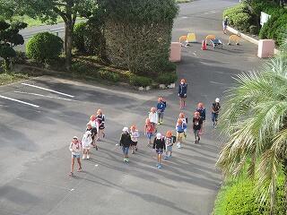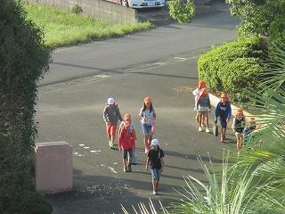 5年生は宿泊学習で不在・・・5年生の班長から4年生の班長へ・・・・バトンが渡されて・・の登校です。