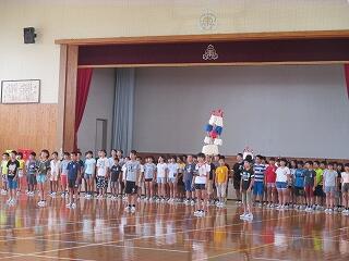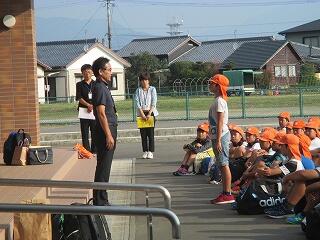 児童代表が宿泊学習の息込みを話し、すがすがしい挨拶となりました。