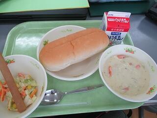 平和学習でお世話になった講師の方々と一緒に給食を頂きました。