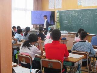 3年生・・総合的な学習の時間 投稿日時 : 2018/11/27 minami03 宮崎経済連の方をお招きして、ピーマンがどのように全国の皆様のお手元に届くか・・・その旅についてお話頂きました。子ども達は興味しんしんの様子で懸命にメモを取っていましたよ。