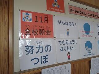 創立70周年 投稿日時 : 2018/11/30 minami03 方向は明日で、創立70周年を迎えます。朝の時間に校長先生から、大切なお話がありました。詳しくは、本ホームページ「校長室から」をご覧下さい。なお校長室前にはこれまで学校のさまざまな写真が掲げられています。子ども達は興味しんしん・・・じっくりみていましたよ。