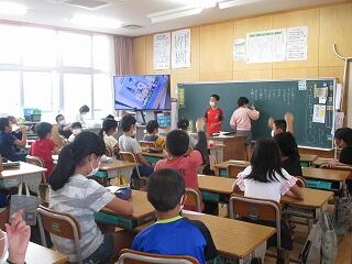 日本各地に伝わる郷土芸能について学びました。みんな興味津々のようでした。