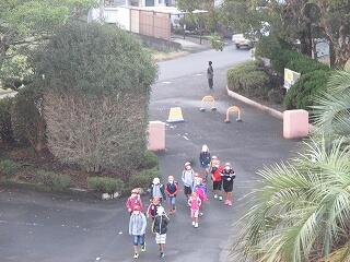 みんな元気に登校!運動場ではマラソン大会にむけて準備が進められていましたよ。