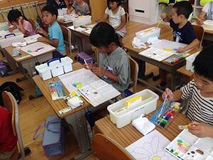 ドキドキしながら絵具をパレットに出して、丁寧に塗っていました。