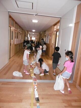 きれいに並んでいますね。なんと、校長室まで箱の列が続いていました!