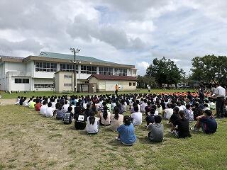 全校体育 投稿日時 : 2020/09/23 syokuin 今日は1時間目に全校体育の練習をしました。始めての全校体育でしたが、開会式や閉会式の練習をどの団も一生懸命頑張っていました。運動会での活躍が楽しみです。