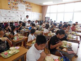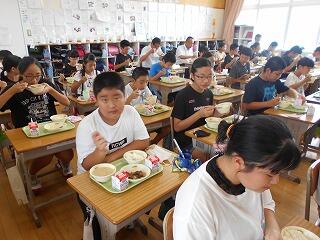 美味しい給食 投稿日時 : 2020/09/02 syokuin 今日は地産地消の給食メニューということで、給食にウナギがでました。高価で中々食べる事できないウナギ、児童はニコニコしながら美味しそうに食べていました。 また、6年生の教室には、西都市長が来校し、一緒に給食の時間を楽しみました。