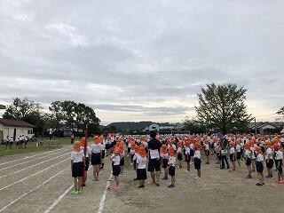 全校体育 投稿日時 : 2020/09/23 syokuin 今日は1時間目に全校体育の練習をしました。始めての全校体育でしたが、開会式や閉会式の練習をどの団も一生懸命頑張っていました。運動会での活躍が楽しみです。