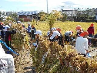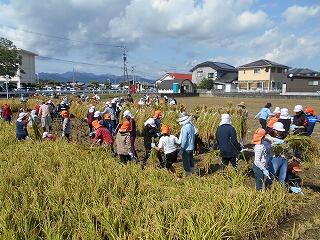 ついに稲刈りを迎えました! 投稿日時 : 2020/09/28 syokuin 9月25日(金)に、学校田の稲刈りをしました。地域づくり協議会の皆さん、保護者の皆さんのおかげで、たくさん収穫することができました。