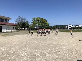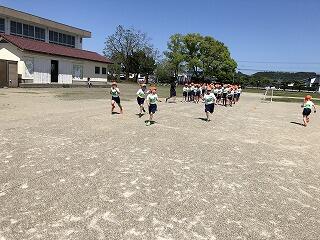 初めての学年体育(4年) 投稿日時 : 2021/04/19 syokuin 今年度初めて学年での体育を行いました。合図でダッシュやスキップなど様々なスタートダッシュの練習をしました。最後には学級対抗リレーを行い、大盛り上がりでした!