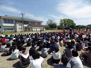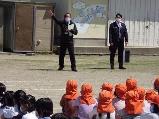 避難訓練(不審者) 投稿日時 : 2021/04/27 syokuin 本日、不審者の侵入を想定した避難訓練を行いました。不審者役には、スクールサポーターの方や西都警察署の協力をいただき、緊張感のある訓練でした。 子どもたちは、担任の先生や校内放送の指示を聞き、落ち着いて運動場に避難できました。