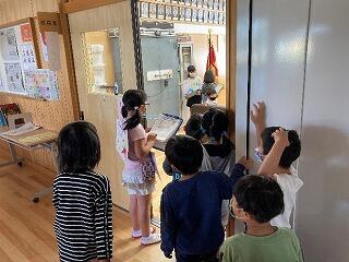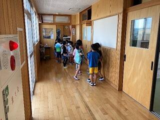 学校探検(1・2年生) 投稿日時 : 2021/04/30 syokuin 2年生が1年生を連れて、学校探検をしました。2年生は今日までに、1年生を案内する準備を一生懸命してきました。1年生は今日の探検を心待ちにしていました。探検中は、2年生が1年生の歩幅に合わせながら歩き、各教室で何をする教室かを丁寧に分かりやすく説明していました。1年生は、これからの学校生活への期待に目を輝かせながらも、授業中の教室に配慮しながら静かに学校を探検していました。