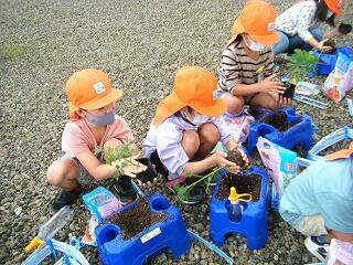 生活科の時間に、ミニトマトの苗を植えました。初めて苗から育てる子ども達。ドキドキ、ワクワクしていたようです。