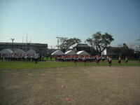 五年生が刈ったお米はフェンスや竹に干して乾かしています。雨が降ったので、ビニール袋をかぶせてあります。