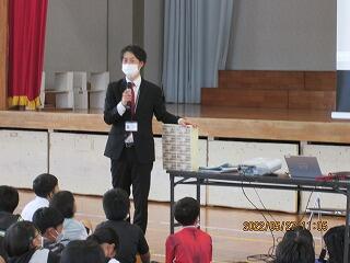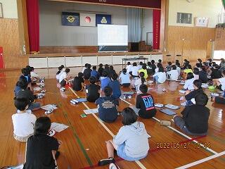 参加したのは6年生です。まずは、体育館でマンゴーについて学習しました。