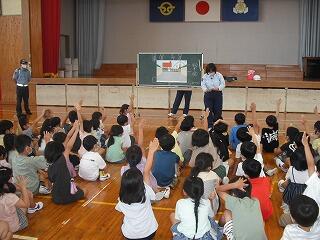 体育館では、交通教室が行われていました。