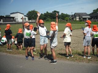 これから暑くなることを予想して、5年生の児童が稲の観察に来ていました。