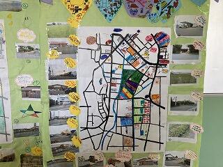3年生の教室前には、自分たちで制作した地域マップが掲示していました。