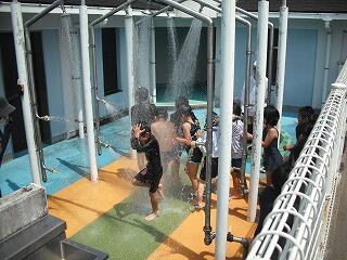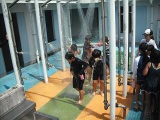 準備運動をして、先生からの注意点をしっかりと聞いてからシャワーです。