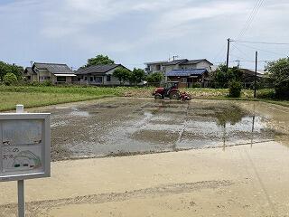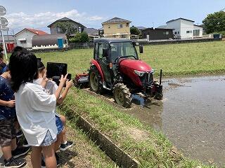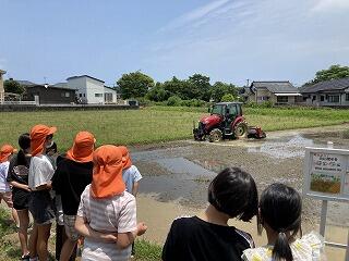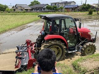 5年生の米作りに向けてトラクターを使っての代かきをしていただきました。