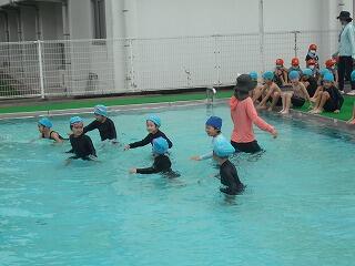 保育園や幼稚園のころよりも大きなプールにおそるおそるの子もいましたが、楽しく水に慣れていました。