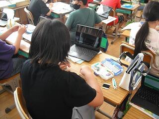 すぐに友達の考えを共有できるICTのよさをいかした学習をしていました。
