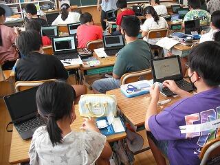 6月とは思えない気温、日差しの中子どもたちは元気に学習に取り組んでいます。