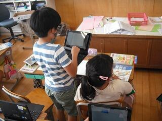 すぐに友達の考えを共有できるICTのよさをいかした学習をしていました。