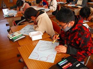 先日6年生の版画の様子をお伝えしましたが、今日は5年生の様子です。