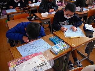 となりの教室では、総合的な学習の時間のまとめに取り組んでいました。