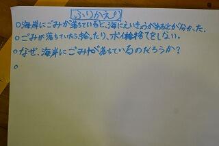 ふりかえりの中で環境問題について考えている子どもたちがいました。