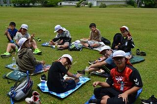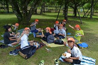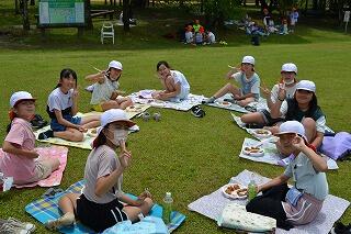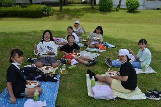 少し暑いですが、さわやかな風が吹く中グループでご飯を食べました。