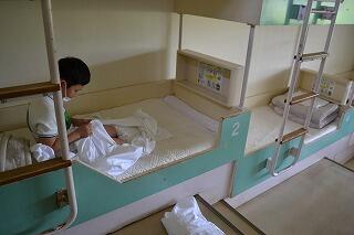 シーツやまくらカバーを友達と協力しながら準備しました。