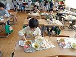 ナンは、ちぎってからカレーにつけて食べます。子どもたちには、いっぺんに食べないよう、少しずつちぎって食べるように伝えました。みんなエスニックな感じを体感しているようでした。