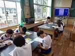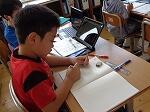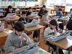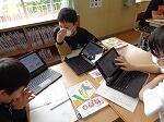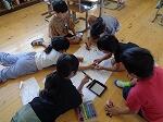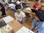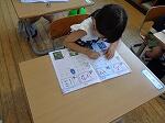 みんな、タブレット上で写真を貼ったり、絵を書いたり、字を付け加えたりして一生懸命作っていました。1年生もタブレットを使いこなしていました。