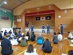 文化庁の事業で、「んまつーポス」のみなさんがこ来校され、5、6年生に指導していただきました。内容は、穂北小学校の校歌の1番、2番に振りをつけるというものです。