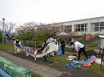 完成した作品を、6年生は運動場で、5年生は教室で披露し合いました。