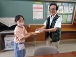 今日も、ヘアーサロンIKEDAの池田謙一さんから、作文が新聞掲載された児童に記念品をいただきました。