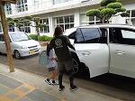 今日は2月29日。3年生のクラスの前には、すてきな車が並んでいました。