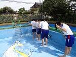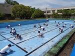 5、6年生が最後の水泳の授業で「着衣泳」を行いました。水の中で自分の命を守るためにはどうすればよいのかを、実感をもって学ぶ機会となりました。