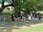 数種類の運動から、グループで自分たちで行う運動を選んで「仲間と楽しく運動するために工夫する」をテーマに、楽しそうに運動してしていました。中には、大繩を跳びながらなわとびをする強者もいました。
