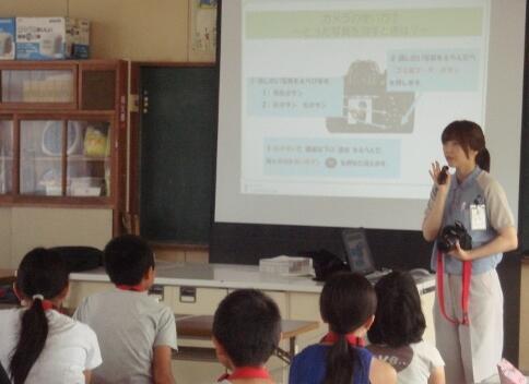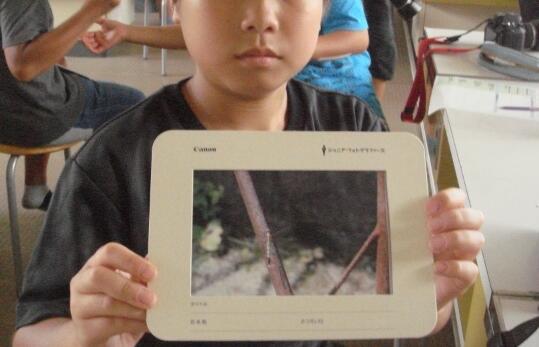 宮崎キャノン株式会社の方々を講師に6年生を対象として行いました。自然をテーマに写真撮影の体験を通して、子どもたちの環境に対する意識を高め、豊かな感性を育むことをねらいとした活動です。初めにカメラの使い方を習い、その後外に出て被写体を探し、撮影をしました。テーマは「夏の自然」。それぞれの感性をめいっぱい働かせ、なかなかの作品が出来上がっていました。プリントアウトした後それぞれタイトルを思い思いに付けて発表していました。この中から、将来の写真家が生まれるでしょうか。