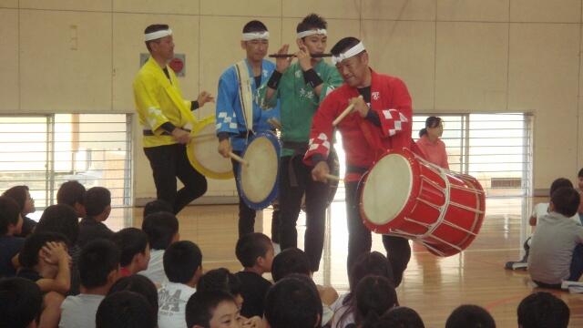 3・4校時は鑑賞教室、今年は橘太鼓「響座」のみなさんが来て下さいました。迫力ある和太鼓の音にみんな釘付けでした。代表児童による和太鼓体験や太鼓と子どもの声の掛け合いなど様々な体験ができました。最後に、座長の岩切さんからは、「日々一生懸命過ごすことが大切」というメッセージをいただきました。